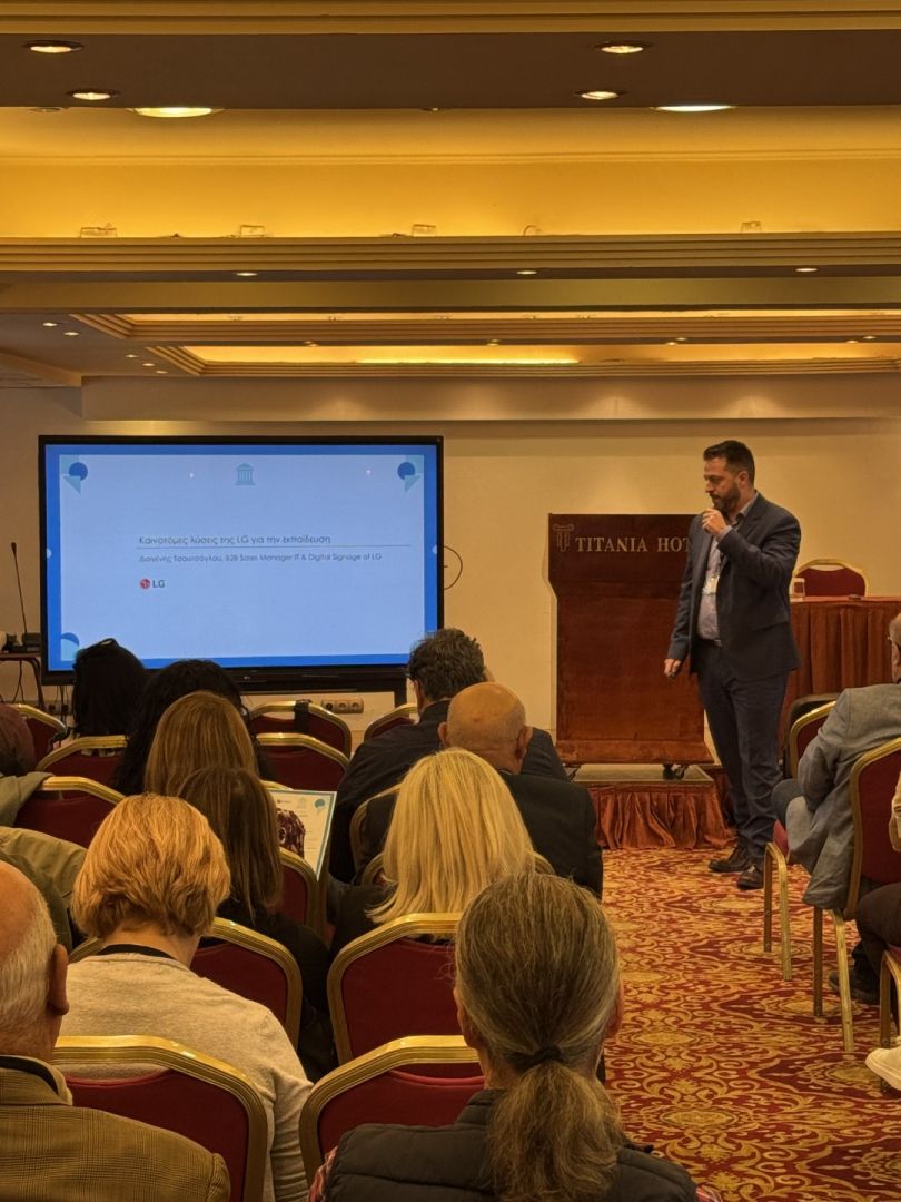 Η διαδραστική οθόνη LG CreateBoard, που ενισχύει τη διδασκαλία και τη συμμετοχή στην τάξη, όπως ανέφερε ο Διογένης Τσουτσόγλου, B2B Sales Manager IT & Digital Signage της LG Electronics Hellas.